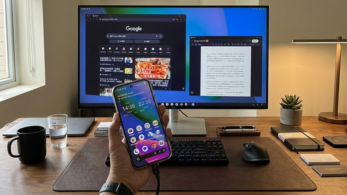Google 近日向開發者發放文件,詳細介紹 Android 16 將全面強化並推廣「桌面模式」(Desktop Mode),支援的 Android 手機只要接駁外置顯示器,就可以在大螢幕上啟動一個獨立桌面介面,用滑鼠鍵盤作多視窗工作,體驗相當接近一部迷你 PC。
